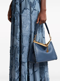 medium Vela shoulder bag Highlights - Indigo blue/cognac brown - Calf leather - Detachable shoulder strap - Single detachable top handle - Metallic trim - Top clasp fastening - Signature pegaso motif - Gold-tone hardware - Braided edge - Main compartment - Removable pouch Made in Italy Composition Outer: Calf Leather 100%
