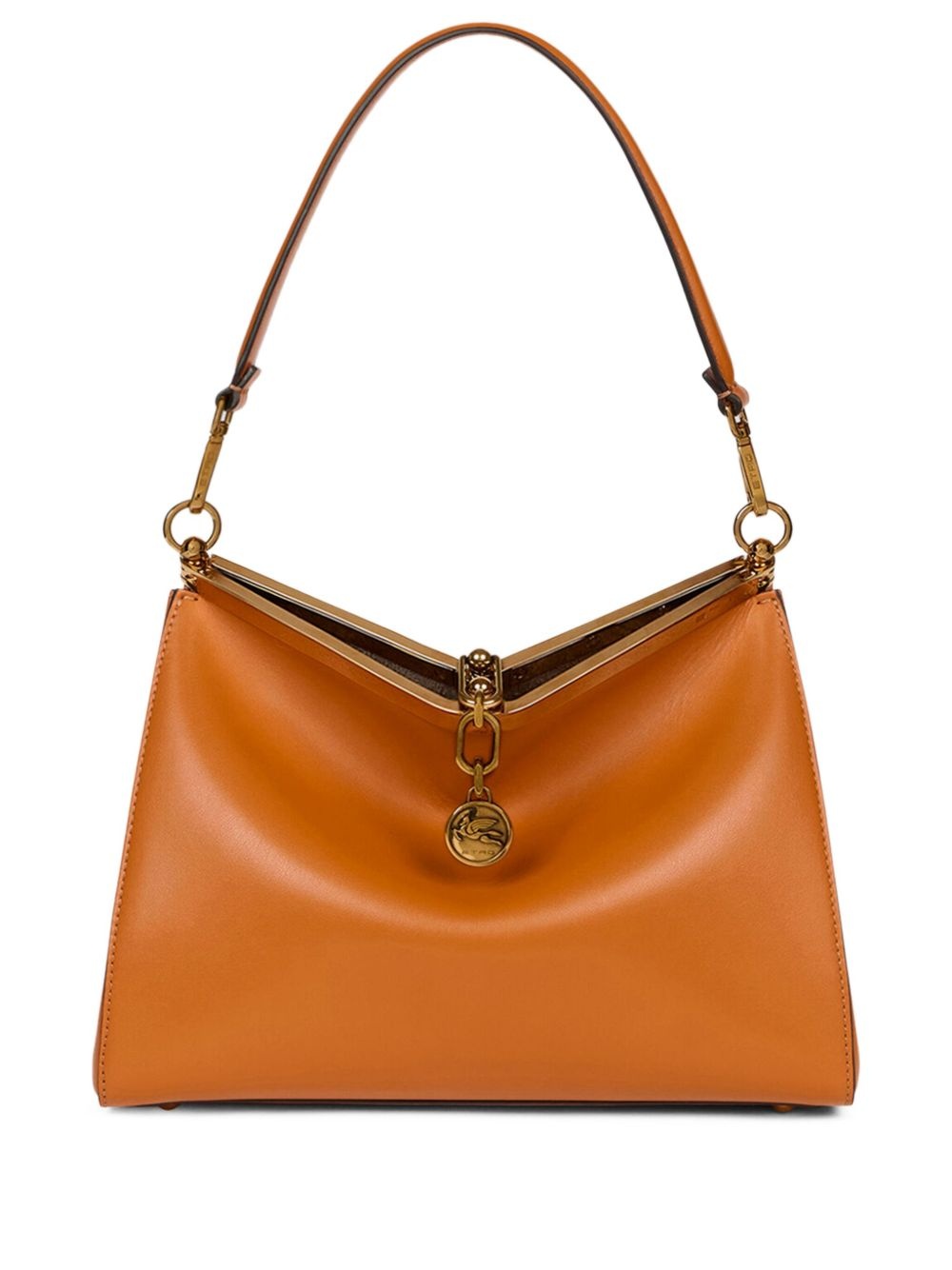 medium Vela shoulder bag Highlights - Orange - Leather - Calfskin leather strap - Clasp fastening - Gold-tone logo plaque - Signature pegaso motif - Main compartment - Detachable shoulder strap - Gold-tone hardware Made in Italy Composition Outer: CALFSKIN 100% Lining: Bovine Leather (top grain) 100% SIZE & FIT Measurement DEPTH 4.33 in(11 cm) HEIGHT 11.02 in(28 cm) WIDTH 8.46 in(21.5 cm)
