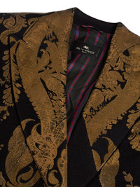 metallic-paisley blazer Highlights - Black/gold-tone - Metallic finish - Paisley print - Double-breasted button fastening - Peak lapels - Long sleeves - Two side flap pockets - Straight hem Made in Italy Composition Wool 90%, Cashmere 10%