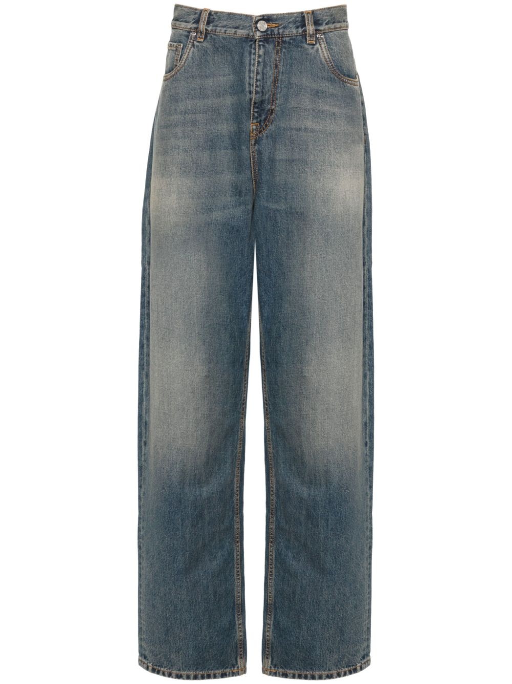 mid-rise wide-leg jeans Highlights - Indigo blue - Cotton - Washed denim - Signature pegaso motif - Embroidered logo to the rear - Mid-rise - Belt loops - Concealed fly and button fastening - Classic five pockets - Wide leg Made in Italy Composition Cotton 100% SIZE & FIT Model measurements Height 6 ft 2 in(1.87 m) Bust/Chest 37.79 in(96 cm) Hips 37.79 in(96 cm) Waist 30.31 in(77 cm) FittingInformation Designed with a wide leg, these jeans offer a loose and roomy fit Sturdy and hard-wearing, this denim piece offers no stretch This piece fits true to size – take your usual size Washing instructions Machine Wash