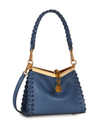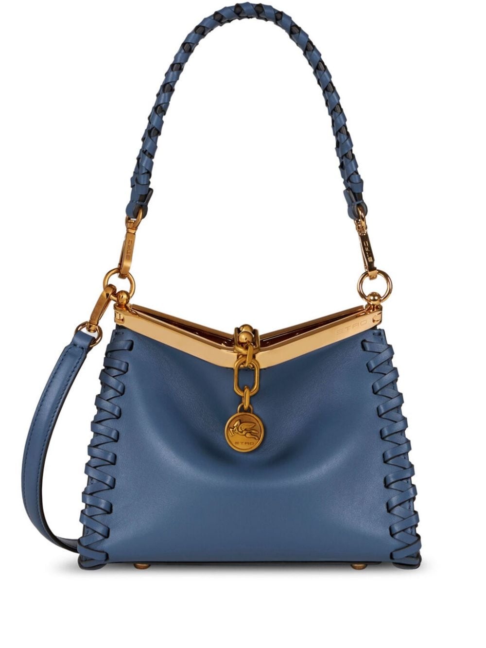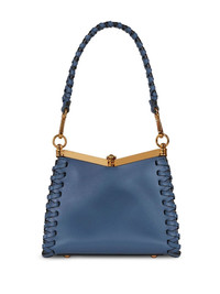 small Vela shoulder bag Highlights - Blue - Calf leather - Braid detailing - Logo charm - Clasp fastening - Single detachable top handle - Detachable shoulder strap - Main compartment Made in Italy Composition Outer: Calf Leather 100% SIZE & FIT Measurement DEPTH 3.54 in(9 cm) HEIGHT 6.29 in(16 cm) WIDTH 8.26 in(21 cm)