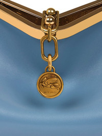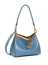 mini Vela tote bag Highlights - Blue - Calf leather - Signature pegaso motif - Open top - Single detachable top handle - Detachable shoulder strap - Main compartment - Gold-tone hardware Made in Italy Composition Lining: Calf Leather 100% Outer: Calf Leather 100% SIZE & FIT Measurement DEPTH 3.54 in(9 cm) HANDLE 10.62 in(27 cm) HEIGHT 6.29 in(16 cm) WIDTH 8.26 in(21 cm)