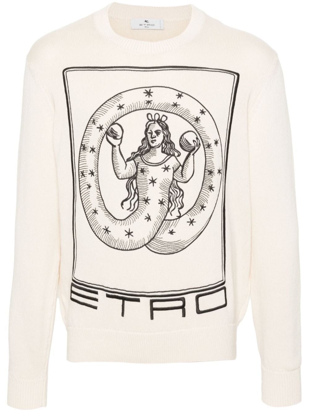 motif-embroidered cotton jumper Highlights - White/black - Cotton - Knitted construction - Ribbed trim - Embroidered motif - Embroidered logo to the front - Crew neck - Drop shoulder - Long sleeves - Ribbed cuffs and hem - Straight hem Made in Italy Composition Cotton 100%, Polyester 100% SIZE & FIT Model measurements Height 6 ft 2 in(1.89 m) Bust/Chest 37.79 in(96 cm) Hips 37 in(94 cm) Waist 29.92 in(76 cm) FittingInformation Designed for a relaxed fit, this piece allows for comfort and movement when worn Made with a midweight knit, this piece offers some stretch This piece fits true to size – take your usual size Washing instructions Machine Wash