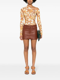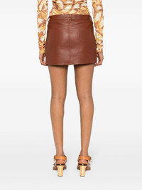 nappa mini skirt Highlights - Chocolate brown - Lambskin/nappa leather - Belt loops at the waist - Classic five pockets - Internal logo tag - Thigh-length - Straight hem - Logo-engraved buttons - Front button and zip fastening Made in Italy Composition Lining: Viscose 57%, Polyester 43% Outer: Lamb Skin 100% SIZE & FIT Model measurements Height 5 ft 10 in(1.77 m) Bust/Chest 33.07 in(84 cm) Hips 37 in(94 cm) Waist 24.8 in(63 cm) FittingInformation This mini-length skirt is intended to be worn low on the hips Soft leather has a supple and smooth construction offering some flexibility This piece fits true to size – take your usual size Measurement HIPS 34.01 in(86.4 cm) LENGTH 12 in(30.5 cm) WAIST 30 in(76.2 cm)