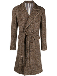 notched-lapels belted-waist coat Highlights - Brown - Notched lapels - Knitted construction - Double-breasted button fastening - Tied waist - Long sleeves - Two front flap pockets - Straight hem - Knee-length Made in Italy Composition Outer: Virgin Wool 49%, Polyester 26%, Acrylic 25% Lining: Viscose 50%, Cupro 50% SIZE & FIT Model measurements Height 6 ft 2 in(1.89 m) Bust/Chest 39.76 in(101 cm) Hips 37.4 in(95 cm) Waist 29.92 in(76 cm) FittingInformation Designed to be unstructured, offering a loose fit throughout The tie fastening gives an adaptable and personalised fit Made from a midweight non-stretch fabric This piece fits true to size – take your usual size Washing instructions Dry Clean Only