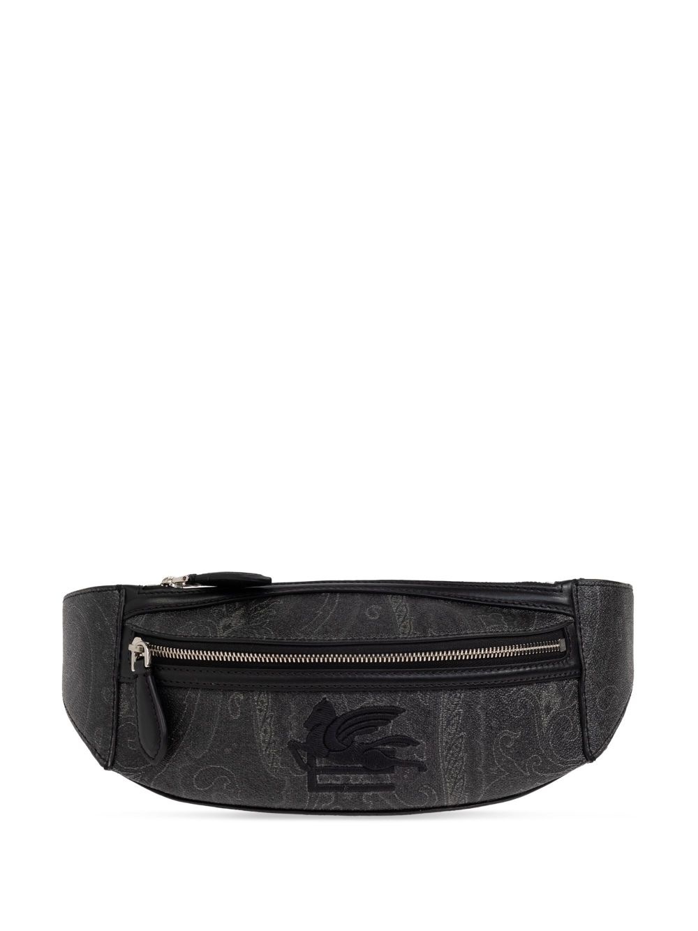 paisley belt bag Highlights - Black - Top zip fastening - Adjustable waist strap - Front zip-fastening pocket - Signature pegaso motif Made in Italy Composition Outer: Calf Leather 100%, Canvas 100% SIZE & FIT Measurement HEIGHT 4.72 in(12 cm) WIDTH 9.84 in(25 cm)