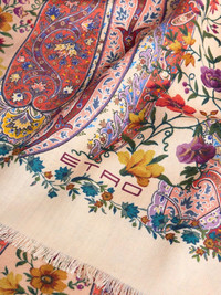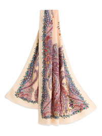paisley floral print scarf Highlights - Beige - Paisley pattern - Floral print - Fringed edges - Wool silk blend - Embroidered logo Made in Italy Composition Wool 70%, Silk 30% SIZE & FIT Measurement LENGTH 66.92 in(170 cm) WIDTH 27.55 in(70 cm) Washing instructions Read Manufacturer Guidelines