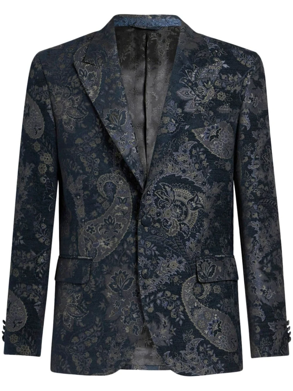paisley jacquard blazer Highlights - Midnight blue - Jacquard - Peak lapels - Front button fastening - Long sleeves - Two side flap pockets - Straight hem Made in Italy Composition Outer: Viscose 52%, Polyester 36%, Modal 12% Lining: Viscose 100%