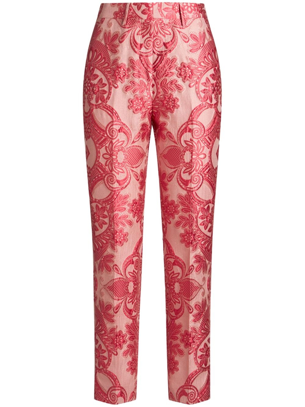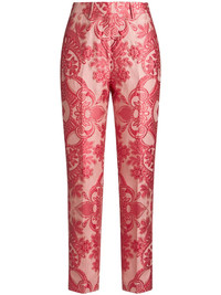 paisley-jacquard cigarette trousers Highlights - Raspberry pink - Concealed front fastening - Two rear welt pockets - Pressed crease - Cropped leg Made in Italy Composition Polyester 76%, Silk 15%, Polyamide 9%
