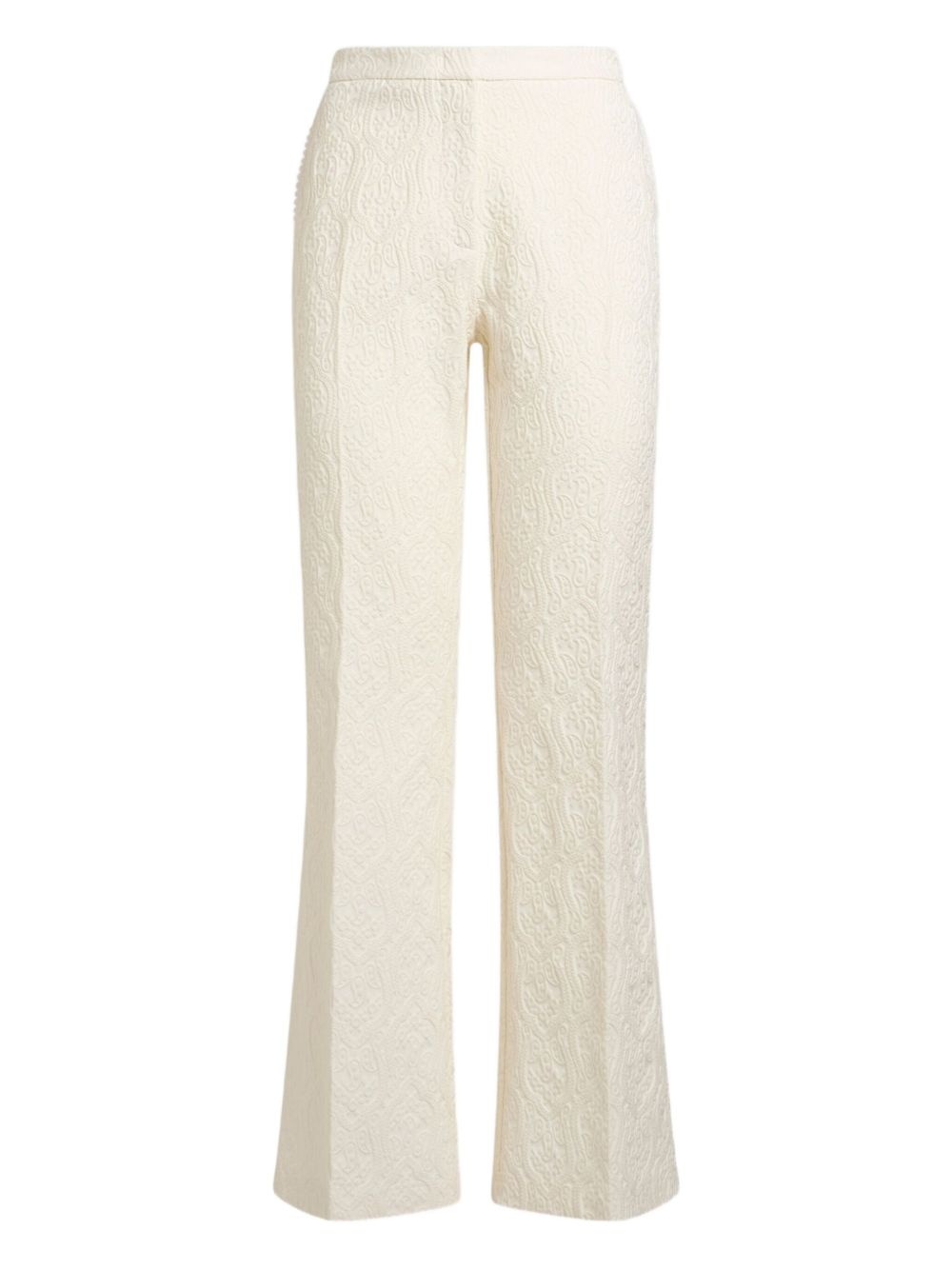 paisley-jacquard flared trousers Highlights - White - Concealed front fastening - High-waisted - Pressed crease Made in Italy Composition Cotton 58%, Viscose 41%, Elastane 1% Washing instructions Read Manufacturer Guidelines