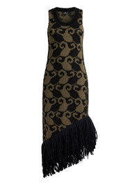 paisley jacquard fringe midi dress Highlights - Black and olive green - Paisley jacquard pattern - Sleeveless - Round neck - Asymmetrical fringe trim - Asymmetric length Made in Italy Composition Alpaca 50%, Wool 50% Washing instructions Read Manufacturer Guidelines