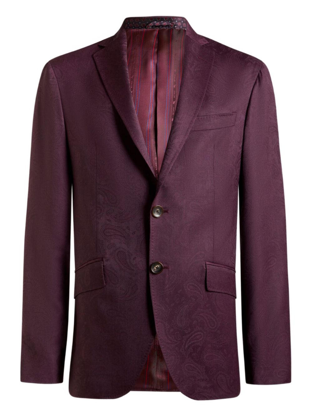 paisley-jacquard jacket Highlights - Red - Paisley jacquard - Button fastening - Notched lapel - Long sleeves - Straight hem Made in Italy Composition Lining: Viscose 52%, Acetate 48% Outer: Wool 100% Washing instructions Read Manufacturer Guidelines