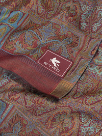 paisley jacquard scarf Highlights - Dark red - Paisley pattern - Jacquard weave - Fringed edges - Logo label Made in Italy Composition Silk 100%, Wool 100% SIZE & FIT Measurement LENGTH 70.86 in(180 cm) WIDTH 17.71 in(45 cm) Washing instructions Read Manufacturer Guidelines