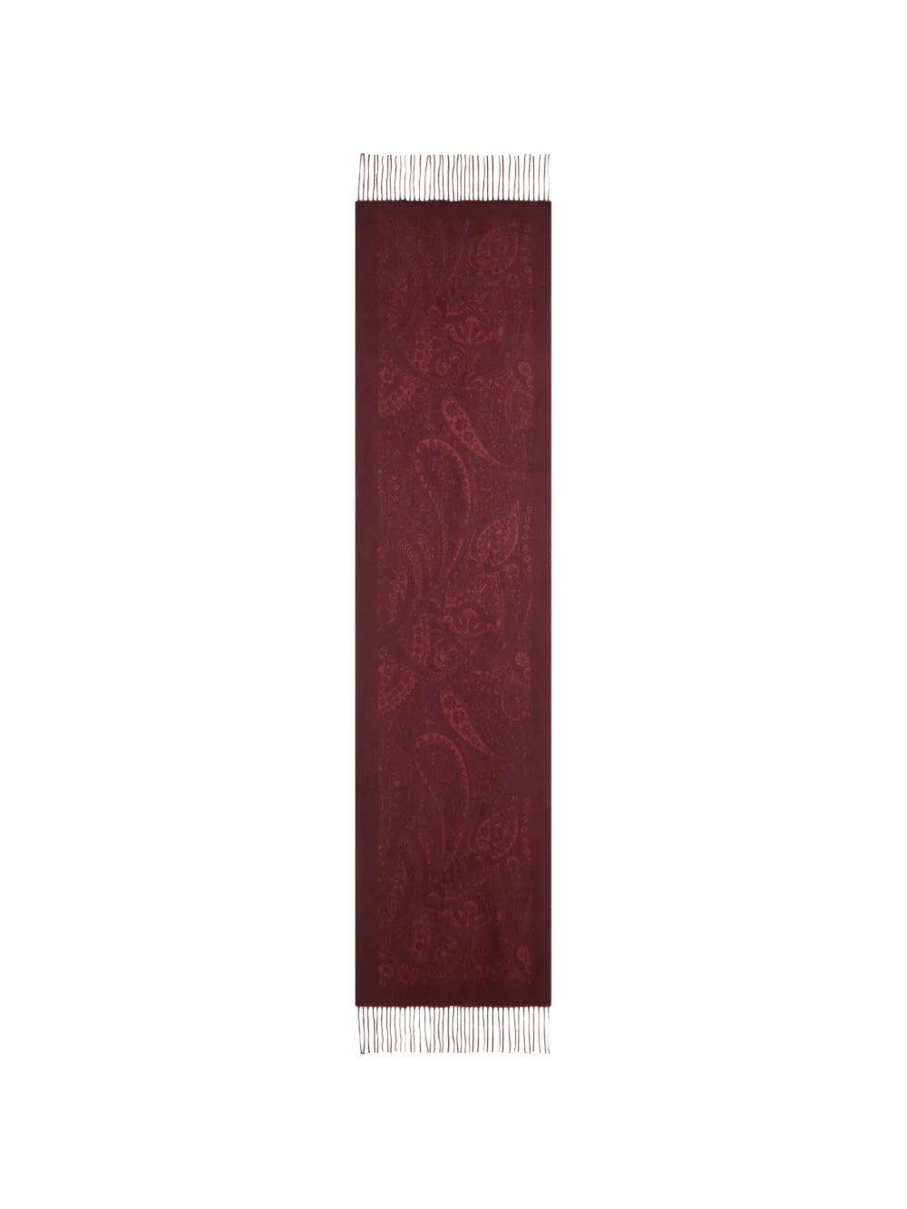 paisley jacquard scarf Highlights - Dark red - Paisley motif - Jacquard - Wool - Fringed edge Made in Italy Composition Wool 100% SIZE & FIT Measurement LENGTH 70.86 in(180 cm) WIDTH 17.71 in(45 cm)