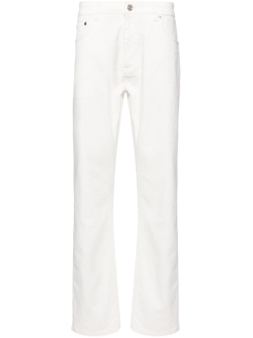 paisley-jacquard straight-leg jeans Highlights - White - Stretch-cotton - Denim - Paisley pattern - Mid-rise - Concealed fly and button fastening - Belt loops - Classic five pockets - Logo patch to the rear - Straight leg Made in Italy Composition Cotton 98%, Elastane 2% SIZE & FIT Model measurements Height 6 ft 2 in(1.87 m) Bust/Chest 36.41 in(92.5 cm) Hips 35.43 in(90 cm) Waist 29.52 in(75 cm) FittingInformation Designed for a slim fit, these jeans offer a comfortable fit that sits just away from the leg Constructed from stretch denim, this piece offers a stretch fit with durability This piece fits true to size – take your usual size