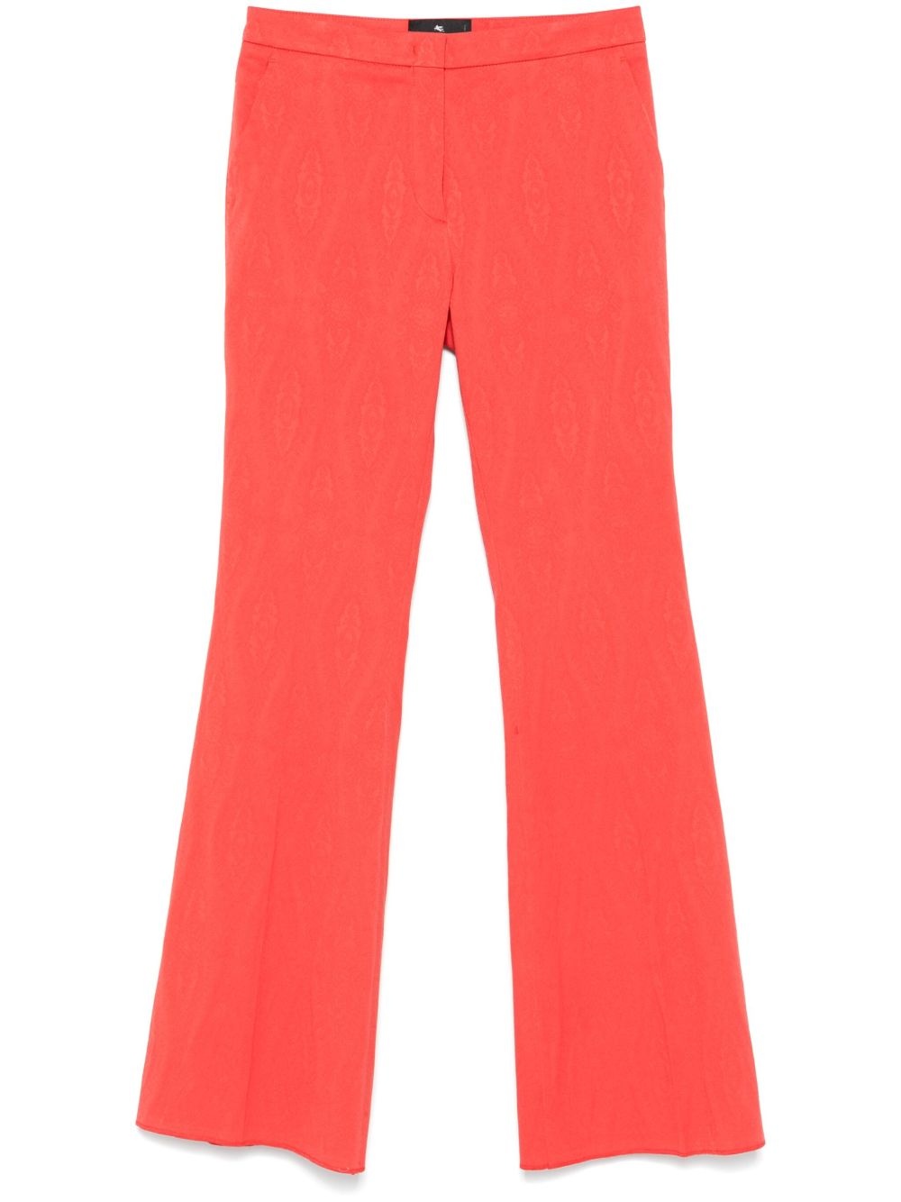 paisley-jacquard trousers Highlights - Terracotta orange - Concealed front button, hook and zip fastening - Two side slit pockets - Two rear welt pockets Made in Italy Composition Cotton 98%, Elastane 2% SIZE & FIT Model measurements Height 5 ft 11 in(1.8 m) Bust/Chest 33.07 in(84 cm) Hips 37.4 in(95 cm) Waist 25.19 in(64 cm) FittingInformation Designed with a flared hem, these trousers allow for a close fit at the waist with a slim fit over the leg and widening towards the hem Made from a midweight stretch fabric, this piece offers elasticity and flexibility when worn