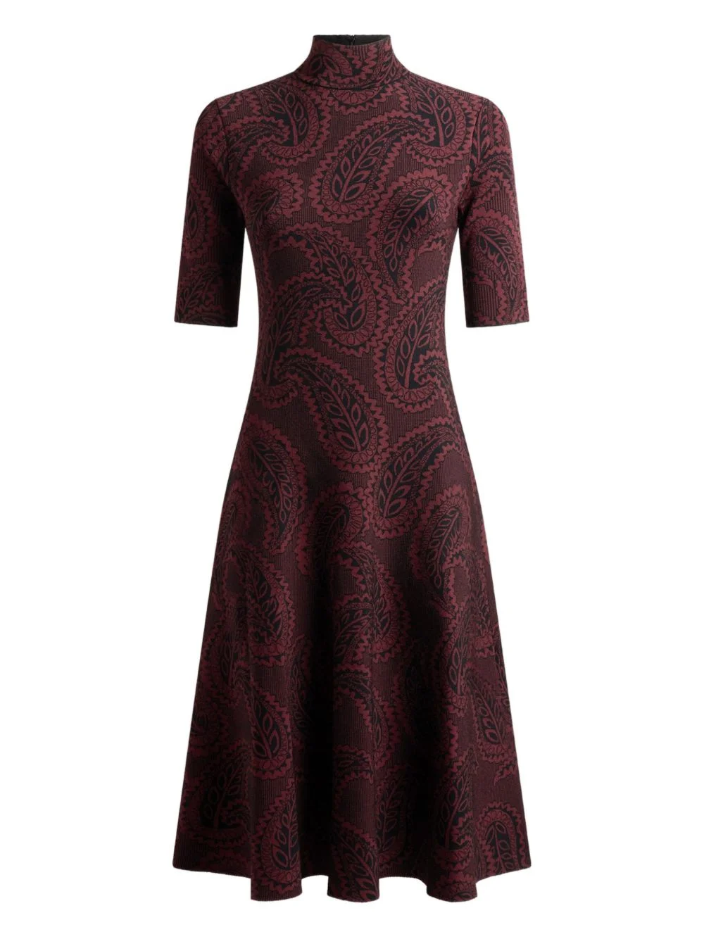 paisley-motif midi dress Highlights - Burgundy - Paisley motif - Jacquard knit - Turtleneck - Short sleeves Made in Italy Composition Viscose 83%, Polyester 17% Washing instructions Read Manufacturer Guidelines