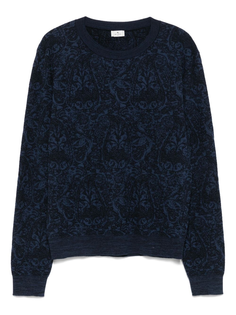 paisley-motif sweater Highlights - Blue - Crew neck - Long sleeves - Ribbed cuffs and hem - Straight hem Made in Italy Composition Cotton 57%, Wool 22%, Acrylic 21% SIZE & FIT Model measurements Height 6 ft 2 in(1.88 m) Bust/Chest 37.4 in(95 cm) Hips 38.58 in(98 cm) Waist 31.1 in(79 cm) FittingInformation Designed for a relaxed fit, this piece allows for comfort and movement when worn The ribbed hem offers a close, comfortable fit Made with a midweight knit, this piece offers some stretch