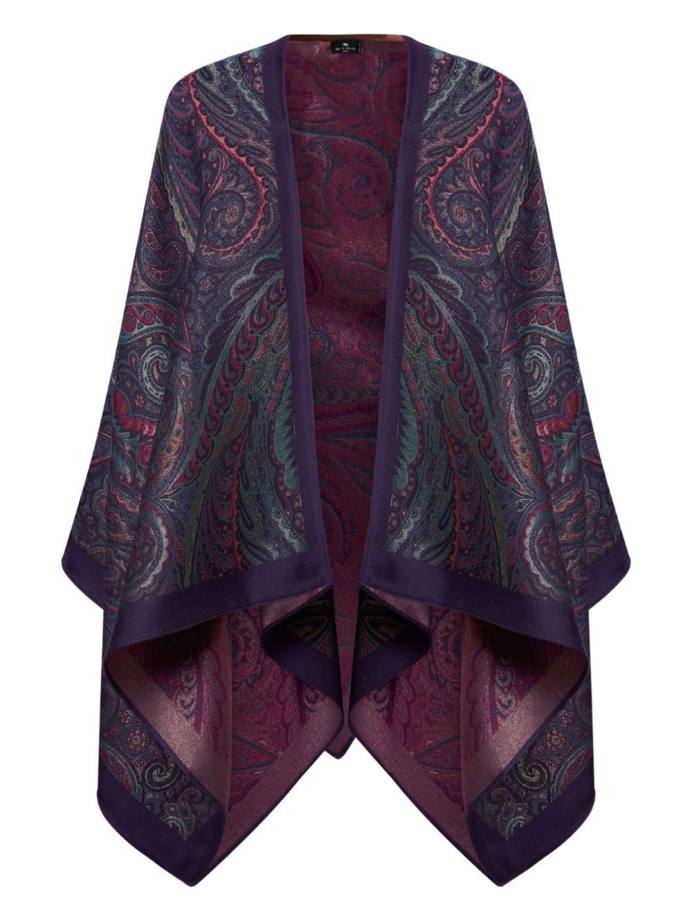 paisley open-front cape Highlights - Blue - Paisley pattern - Jacquard weave - Open front Made in Italy Composition Wool 55%, Polyester 18%, Viscose 14%, Silk 13% Washing instructions Read Manufacturer Guidelines