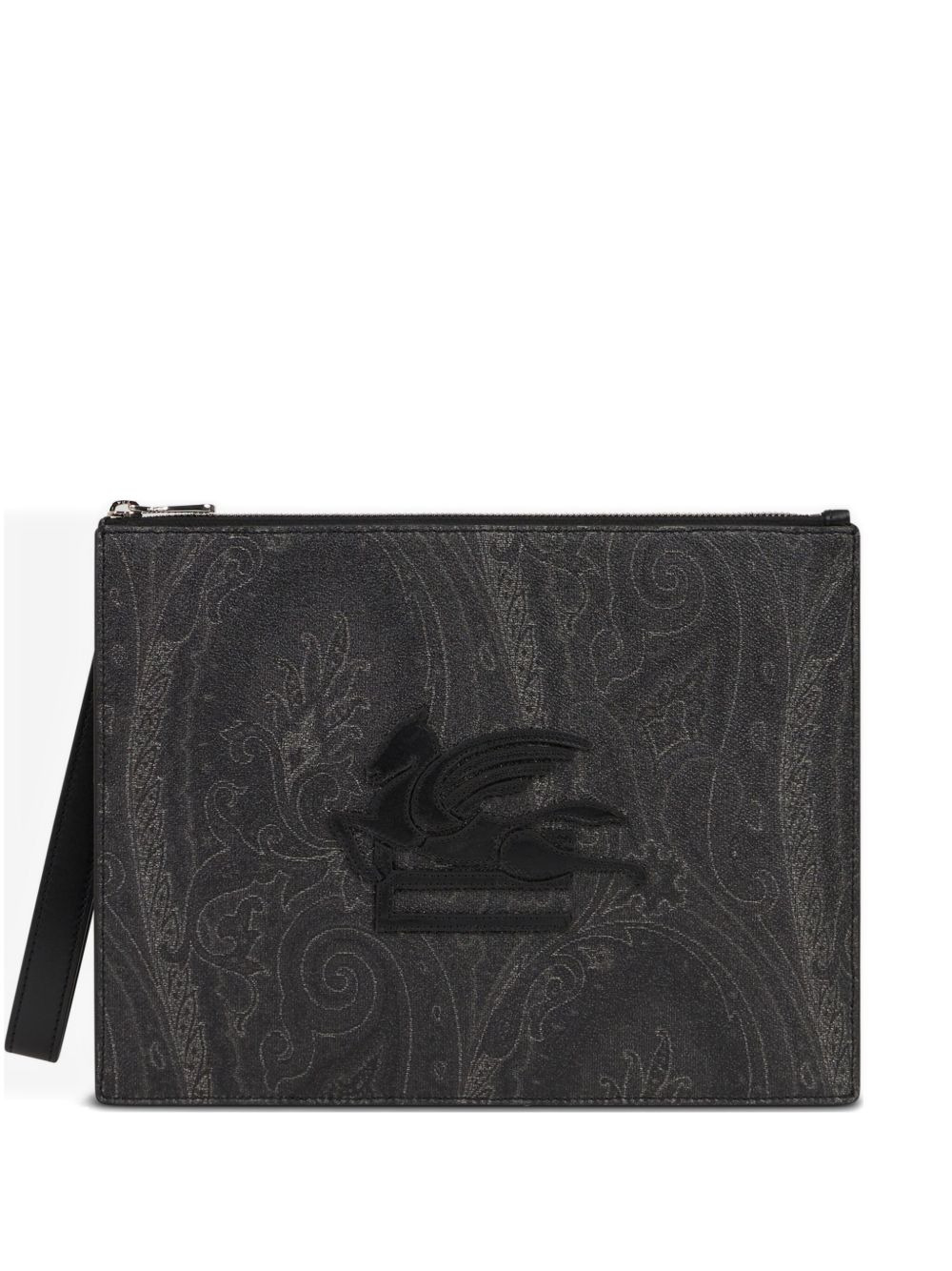 paisley-pattern clutch bag Highlights - Black - Paisley pattern - Zip fastening - Detachable handle - Embossed logo Made in Italy Composition PVC 100%