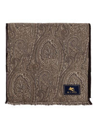 paisley-pattern fringed scarf Highlights - Brown - Paisley pattern - Fringed edges - Wool-blend - Logo patch Made in Italy Composition Wool 61%, Polyester 26%, Silk 13% SIZE & FIT Measurement LENGTH 78.74 in(200 cm) WIDTH 14.96 in(38 cm) Washing instructions Read Manufacturer Guidelines