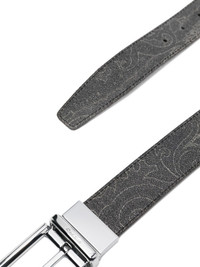 paisley-pattern leather belt Highlights - Black - Calf leather - Paisley pattern - Rectangular buckle - Silver-tone buckle Made in Italy Composition Calf Leather 100% SIZE & FIT Measurement Minimum Length 35.43 in(90 cm) TOTAL LENGTH 39.37 in(100 cm) WIDTH 1.18 in(3 cm)