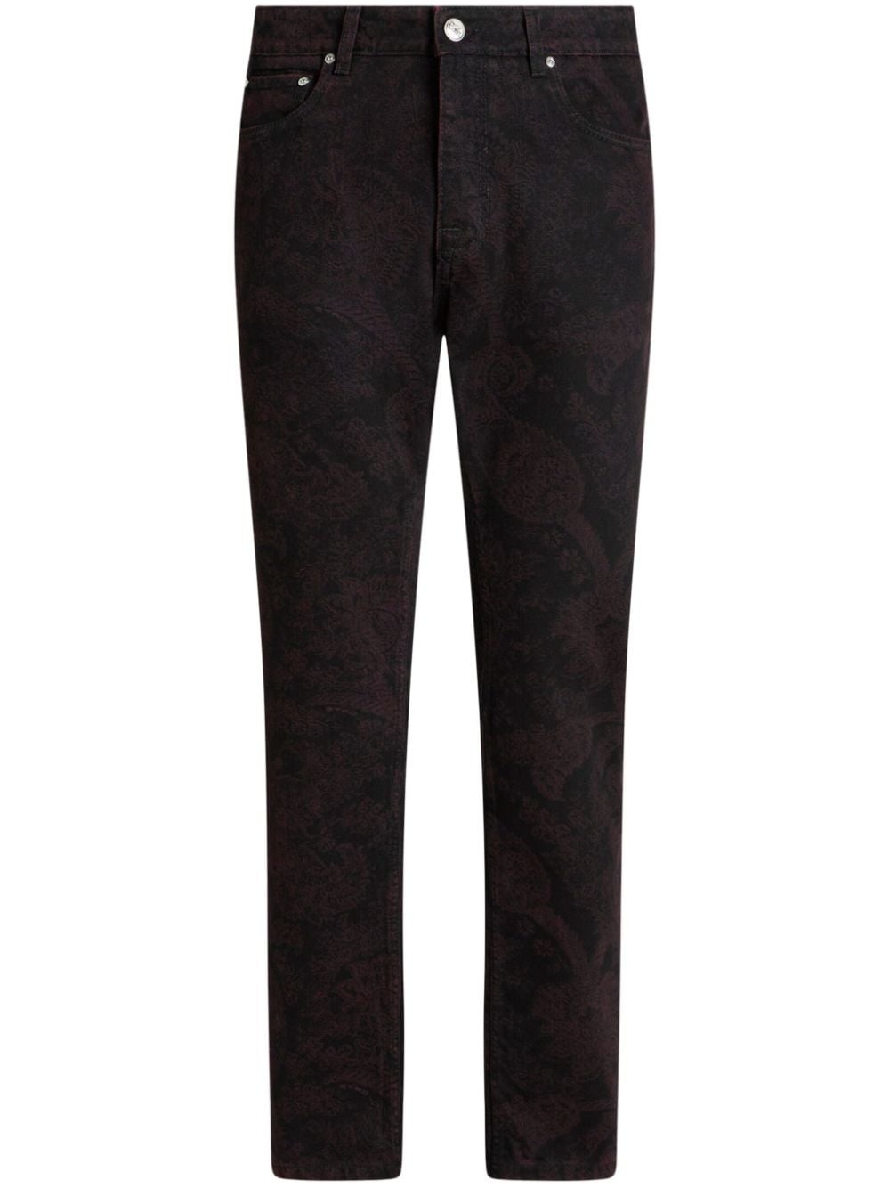 paisley-pattern slim-fit jeans Highlights - Burgundy - Paisley pattern - Logo patch to the rear - Mid-rise - Belt loops - Front button and zip fastening - Straight leg - Classic five pockets Made in Italy Composition Cotton 100%
