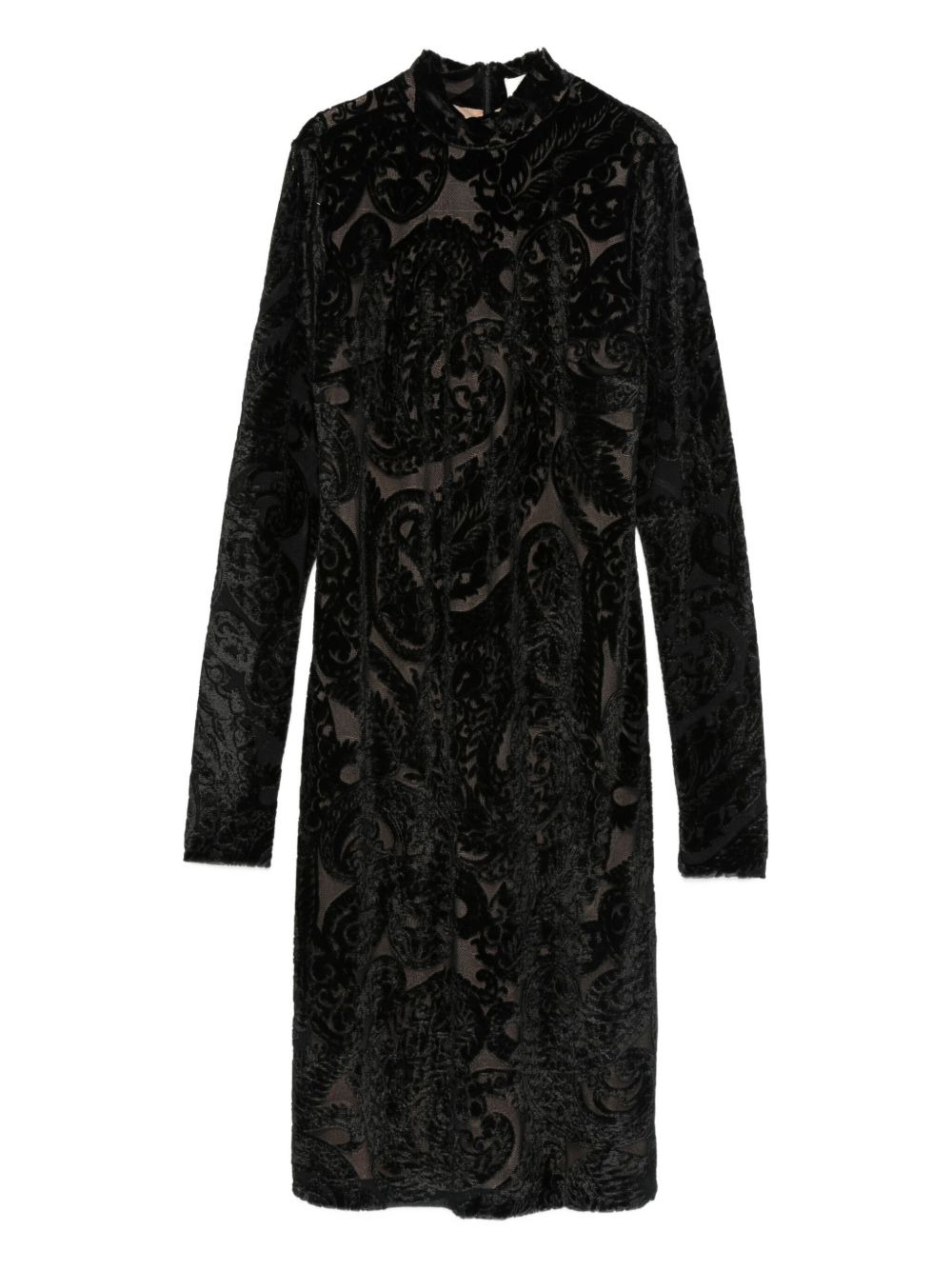 paisley-pattern velvet dress Highlights - Black - Velvet texture - Paisley pattern - High neck - Long sleeves Imported Composition Outer: Viscose 86%, Polyamide 14% Lining: Viscose 100% SIZE & FIT Model measurements Height 5 ft 11 in(1.8 m) Bust/Chest 31.49 in(80 cm) Hips 36.61 in(93 cm) Waist 24.4 in(62 cm) Washing instructions Read Manufacturer Guidelines