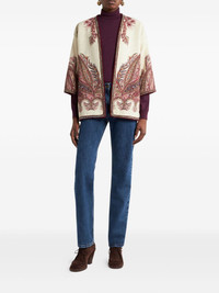 paisley-patterned top Highlights - Light beige - Paisley pattern - Braided trim - Three-quarter sleeves - Open front Made in Italy Composition Polyester 100% SIZE & FIT Measurement LENGTH 27.95 in(71 cm) Shoulder Width 21.25 in(54 cm) SLEEVE LENGTH 21.65 in(55 cm) Washing instructions Dry Clean Only