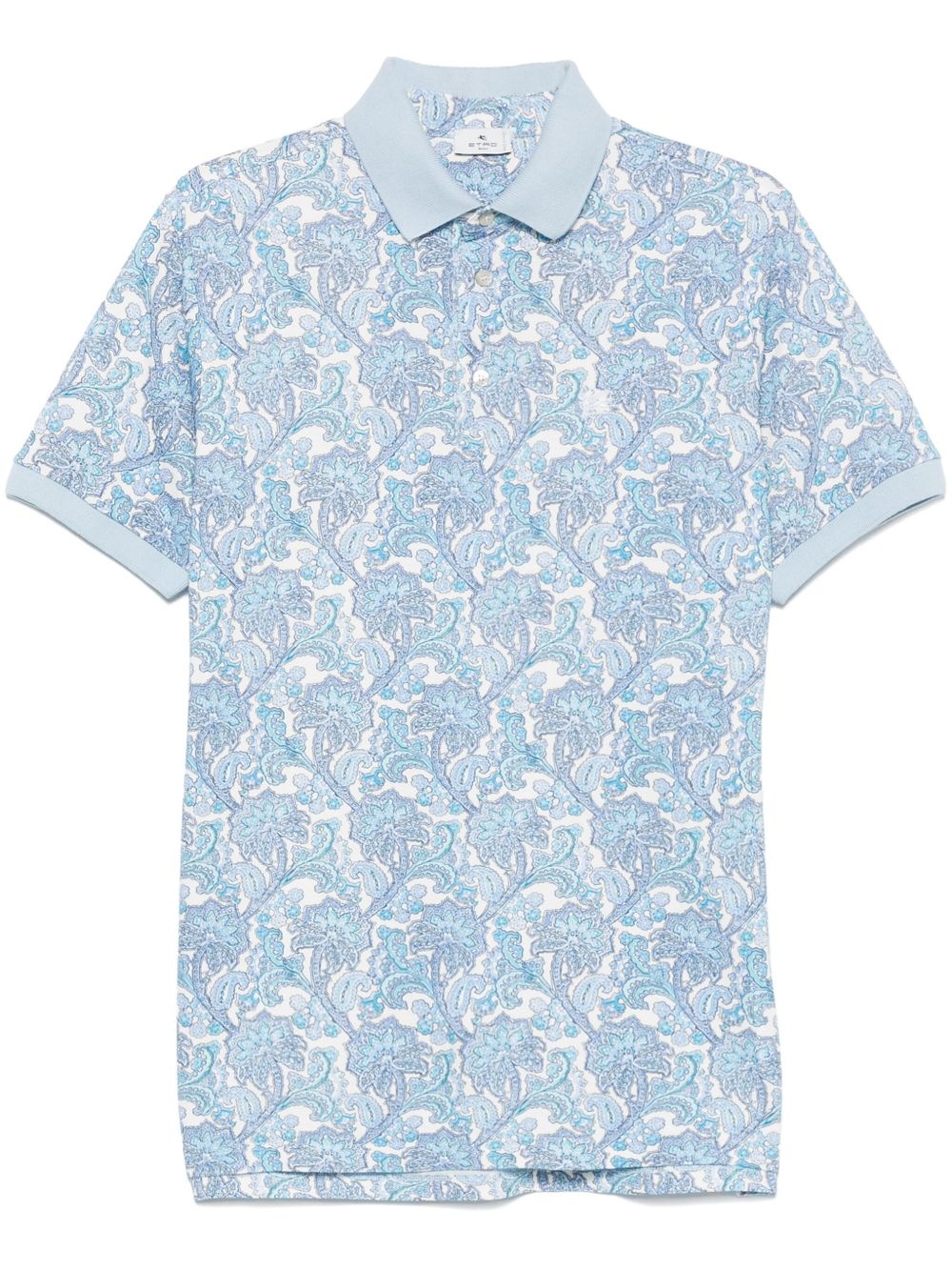 paisley polo shirt Highlights - Light blue - Front button placket - Short side slits - Short sleeves - Ribbed cuffs Made in Italy Composition Cotton 100% SIZE & FIT Model measurements Height 6 ft 0 in(1.84 m) Bust/Chest 35.82 in(91 cm) Hips 37 in(94 cm) Waist 28.34 in(72 cm) FittingInformation Designed for a relaxed fit, this polo shirt offers comfort and movement Made from a midweight non-stretch fabric, this piece offers minimal elasticity when worn