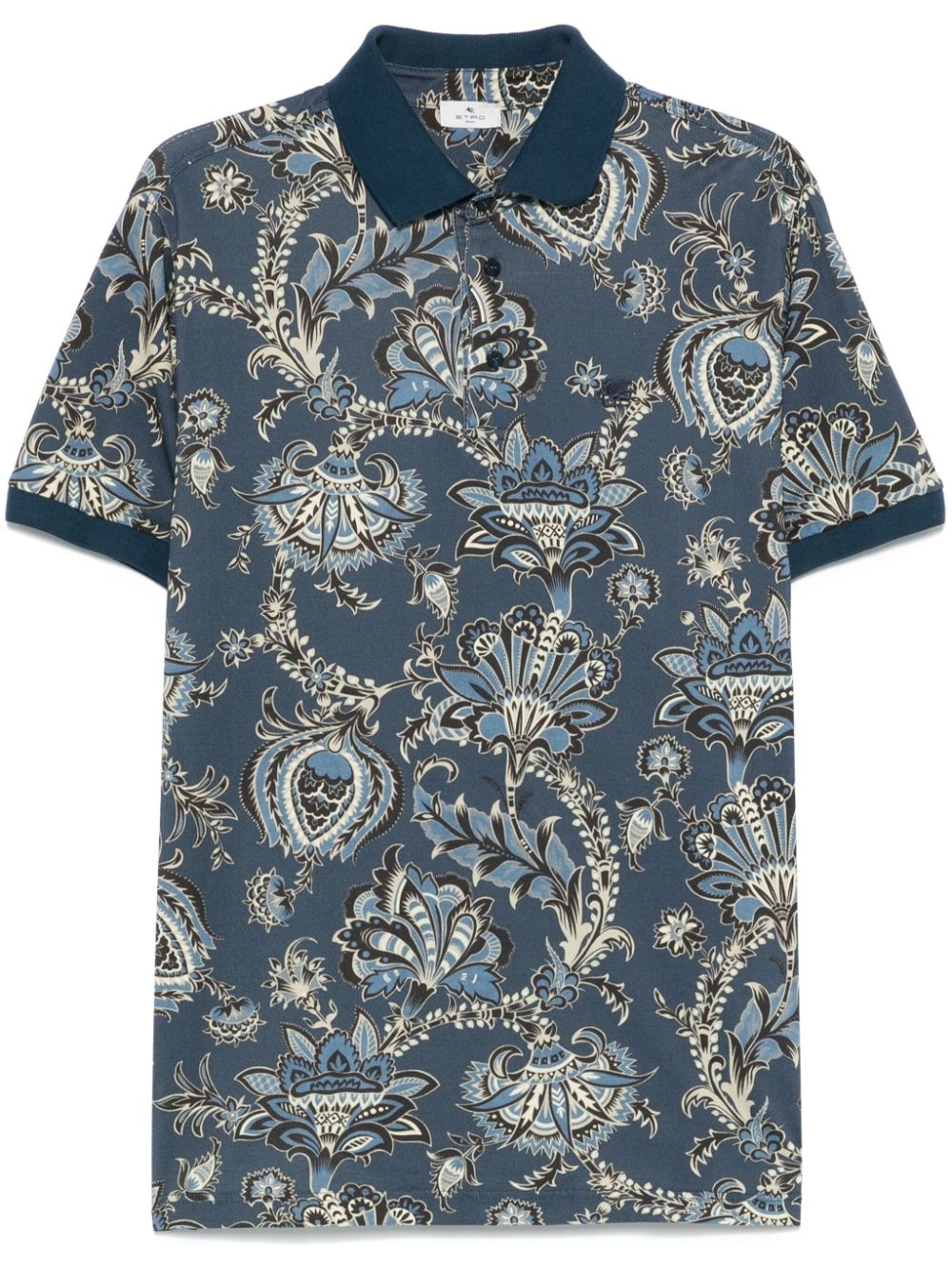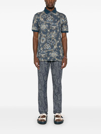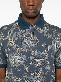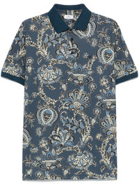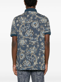 paisley polo shirt Highlights - Prussian blue - Short front button fastening - Short side slits - Contrasting collar - Ribbed cuffs Made in Italy Composition Cotton 100% SIZE & FIT Model measurements Height 6 ft 2 in(1.88 m) Bust/Chest 35.43 in(90 cm) Hips 35.03 in(89 cm) Waist 27.95 in(71 cm) FittingInformation Designed for a regular fit, this polo shirt offers a comfortable loose fit throughout the body Made from a midweight non-stretch fabric, this piece offers minimal elasticity when worn