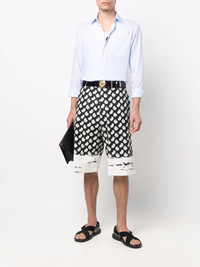 paisley-print bermuda shorts black/green/white cotton paisley print belt loops concealed front fastening straight leg colour-block design Made in Italy Composition Outer: Cotton 98%, Elastane 2% Lining: Cotton 100% SIZE & FIT Model measurements Height 6 ft 1 in(1.85 m) Bust/Chest 35.82 in(91 cm) Hips 37.79 in(96 cm) Waist 29.13 in(74 cm) FittingInformation This piece fits true to size. We recommend you get your regular size Designed for a slim fit at the waist and loose over the leg Made with a mid-weight stretch fabric Washing instructions Hand Wash