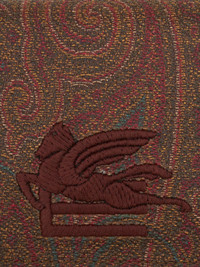 paisley-print bi-fold cardholder dark red calf leather paisley print embroidered logo bi-fold design snap-fit fastening card slots cotton lining Made in Italy Composition Outer: CALFSKIN 100%, Cotton 76%, Polyester 24% Lining: CALFSKIN 100%, Nylon 100% SIZE & FIT Measurement LENGTH 3.34 in(8.5 cm) WIDTH 4.33 in(11 cm)