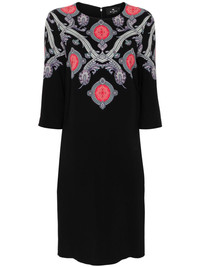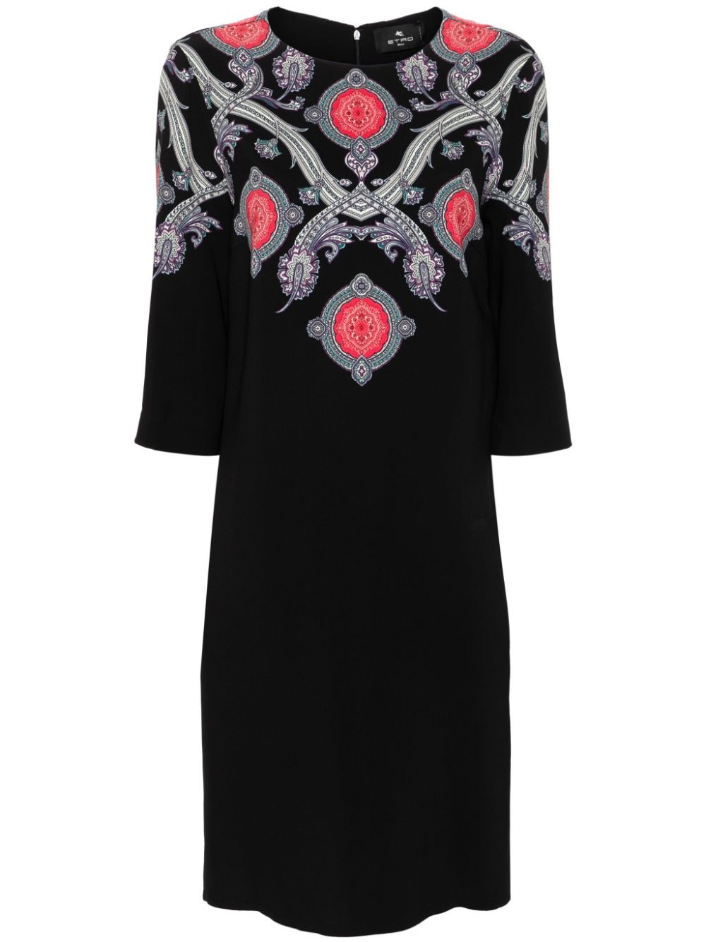 paisley-print cady midi dress Highlights - Black/multicolour - Cady texture - Paisley print - Round neck - Half-length sleeves - Two side inset pockets - Straight hem - Rear zip fastening Made in Italy Composition Outer: Viscose 96%, Elastane 4% Lining: Silk 100% SIZE & FIT Model measurements Height 5 ft 11 in(1.8 m) Bust/Chest 31.49 in(80 cm) Hips 36.61 in(93 cm) Waist 24.4 in(62 cm) FittingInformation Designed for a slim fit that sits just away from the body offering a close yet comfortable fit Made from a midweight fabric This piece fits true to size – take your usual size