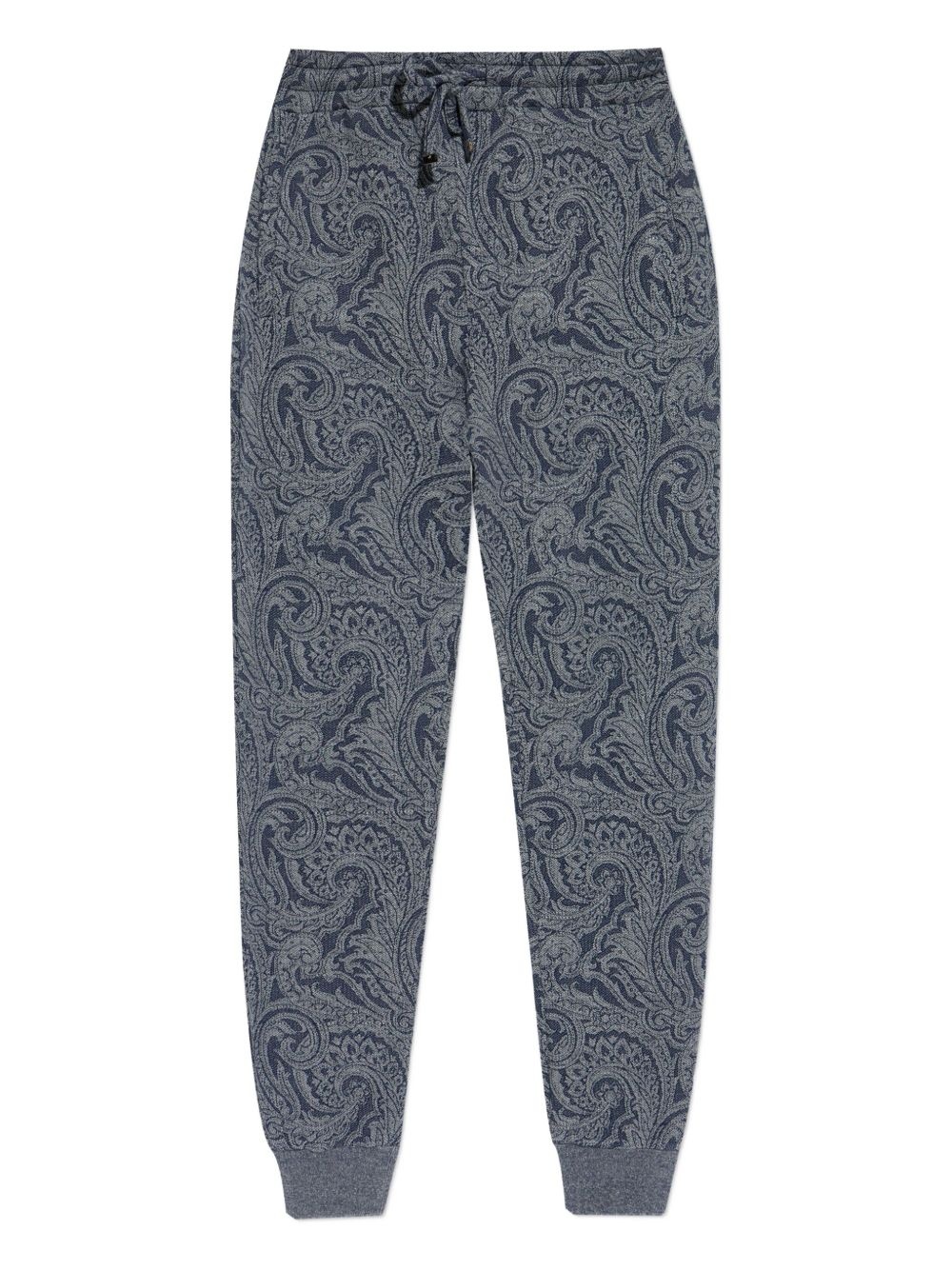 paisley-print drawstring track pants Highlights - Dark blue - Paisley print - Drawstring fastening - Side pockets - Cuffed hem - Jersey fabric Made in Italy Composition Viscose 86%, Polyamide 14%
