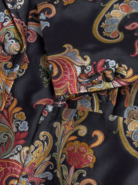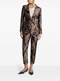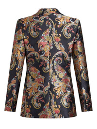 paisley-print fil-coupe jacquard jacket Highlights - Blue/multicolour - Patterned jacquard - Fil-coupe effect - Paisley print - Fabric-covered buttons - Peak lapels - Front button fastening - Two front patch pockets - Long sleeves - Buttoned cuffs - Central rear vent - Full lining Made in Italy Composition Lining: Viscose 52%, Acetate 48% Outer: Polyester 100% Washing instructions Read Manufacturer Guidelines