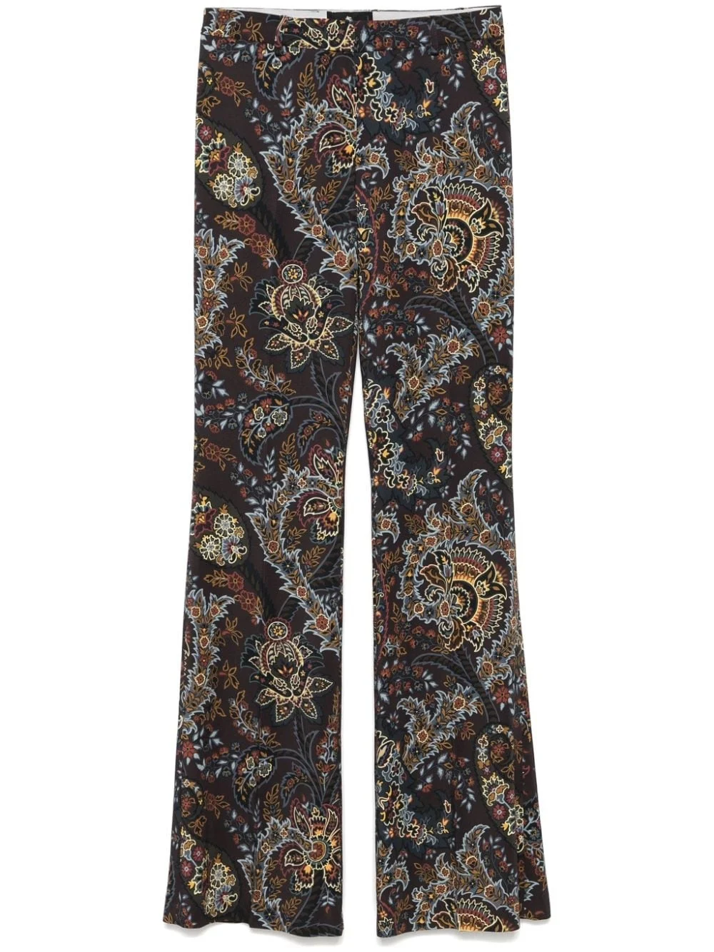 paisley-print flared trousers Highlights - Midnight blue/multicolour - Stretch-design - Twill weave - Paisley print - Concealed front button, hook and zip fastening - Belt loops - Two rear welt pockets - Flared hem Made in Italy Composition Viscose 95%, Elastane 5% SIZE & FIT Model measurements Height 5 ft 11 in(1.8 m) Bust/Chest 31.49 in(80 cm) Hips 36.61 in(93 cm) Waist 24.4 in(62 cm) FittingInformation Designed with a flared hem, these trousers allow for a close fit at the waist with a slim fit over the leg and widening towards the hem Made from a midweight stretch fabric, this piece offers elasticity and flexibility when worn Washing instructions Dry Clean Only