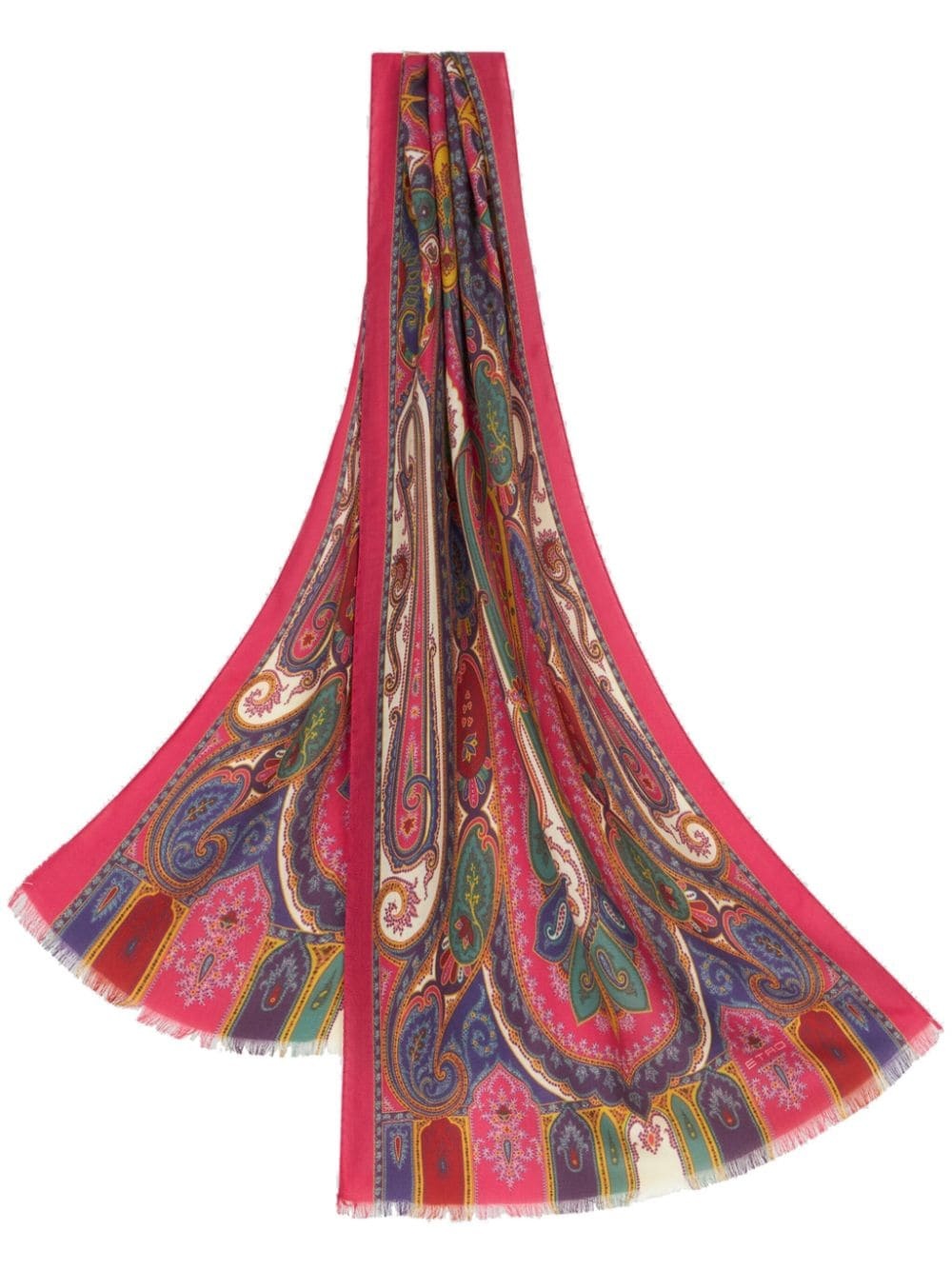 paisley-print frayed-edge cashmere-blend scarf Highlights - Red/multicolour - Cashmere-silk blend - Paisley print - Logo print to the front - Rectangle shape - Wraparound style - Frayed edge Made in Italy Composition Cashmere 70%, Silk 30% SIZE & FIT Measurement LENGTH 55.11 in(140 cm) WIDTH 17.71 in(45 cm)