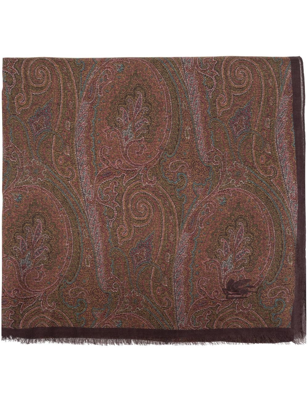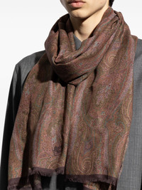paisley-print frayed-edge scarf Highlights - Chocolate brown/multicolour - Modal-cashmere blend - Paisley print - Signature pegaso motif - Frayed edge - Rectangle shape - Wraparound style Made in Italy Composition Modal 90%, Cashmere 10% SIZE & FIT Measurement LENGTH 78.74 in(200 cm) WIDTH 26.37 in(67 cm)