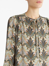 paisley-print front-tie blouse Highlights - Multicolour - Paisley print - Front tie fastening - Long sleeves - Buttoned cuffs - Straight hem Made in Italy Composition Viscose 97%, Elastane 3% SIZE & FIT Measurement LENGTH 26.77 in(68 cm)