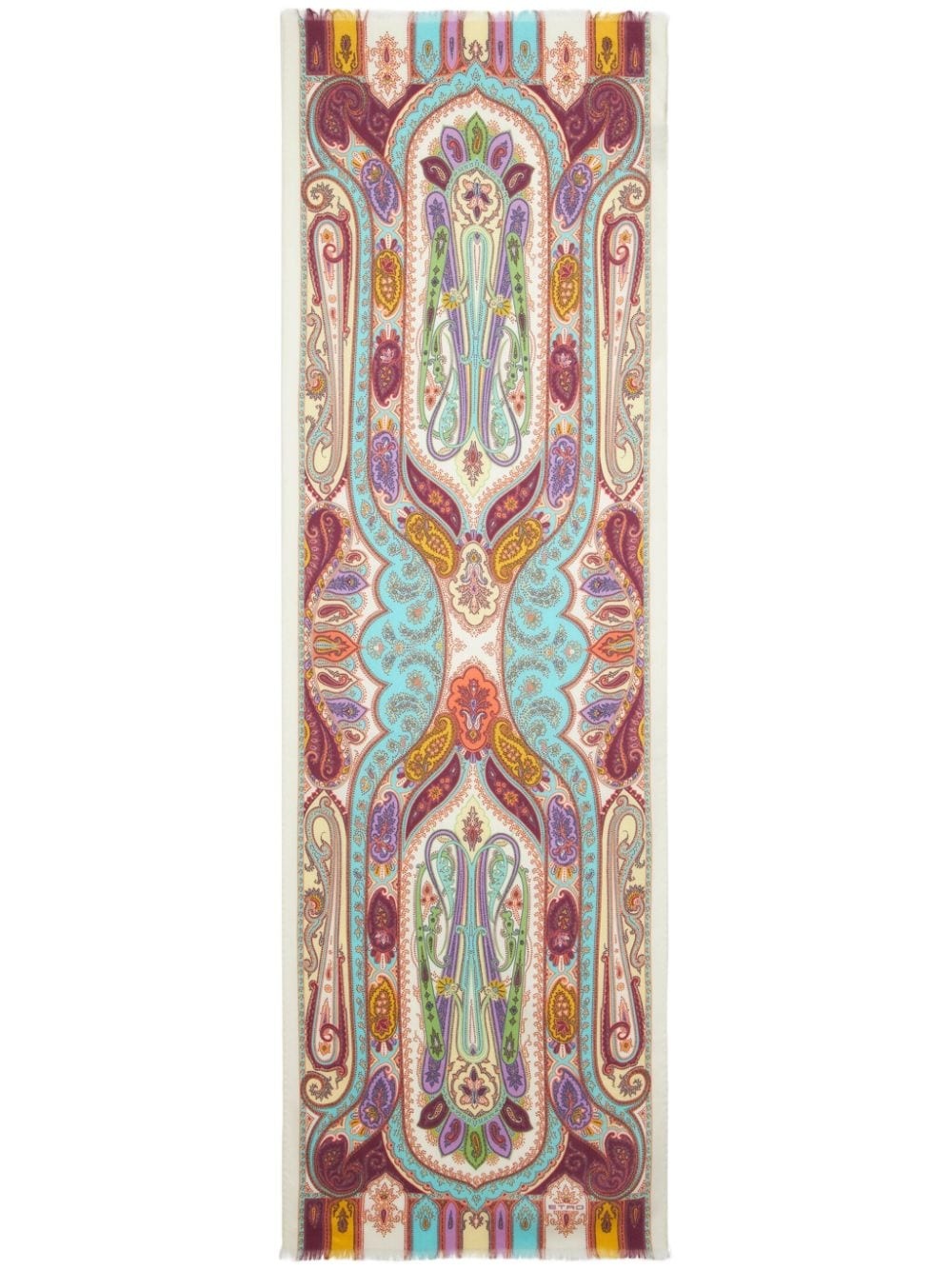 paisley-print jacquard scarf Highlights - White/multicolour - Cashmere-silk blend - Twill weave - Patterned jacquard - Paisley print - Solid border - Wraparound style Made in Italy Composition Cashmere 70%, Silk 30% SIZE & FIT Measurement LENGTH 55.11 in(140 cm) WIDTH 17.71 in(45 cm) Washing instructions Read Manufacturer Guidelines