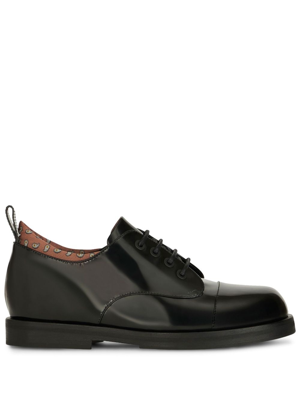 paisley-print leather Derby shoes Highlights - Black - Calfskin - Polished finish - Paisley print - Tonal stitching - Pull-tab at the heel - Round toe - Front lace-up fastening - Branded insole - Rubber sole Made in Italy Composition Outer: CALFSKIN 100% Lining: CALFSKIN 100% Sole: Leather 50%, Rubber 50% Trims: Polyester 100%