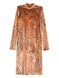 Paisley-print velvet turtleneck midi dress Orange