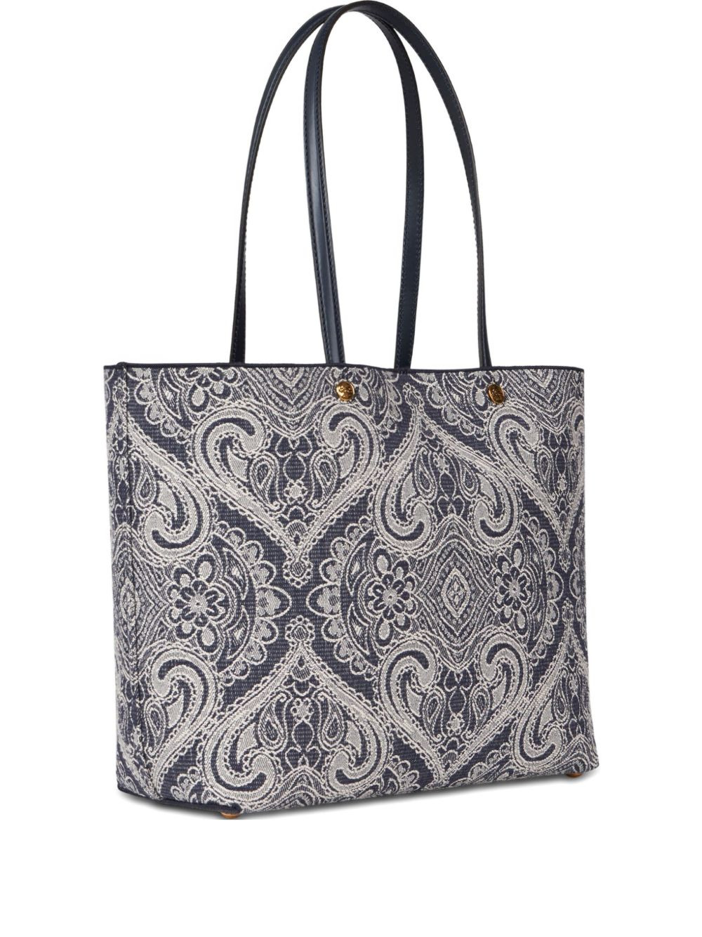 paisley-print open-top tote bag Highlights - Blue - Paisley pattern - Top handles - Gold-tone press studs Made in Italy Composition Outer: Cotton 100%, Calf Leather 100% Lining: Cotton 100%, Calf Leather 100% SIZE & FIT Measurement DEPTH 5.51 in(14 cm) HEIGHT 9.44 in(24 cm) WIDTH 8.85 in(22.5 cm)