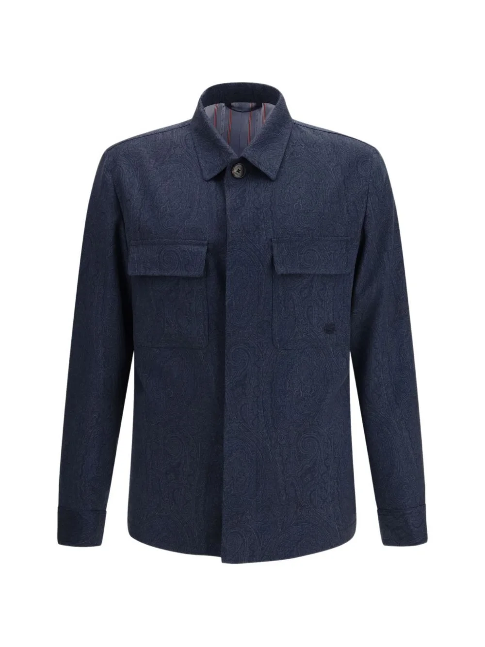 paisley-print overshirt Highlights - Blue - Paisley print - Classic collar - Concealed button fastening - Chest flap pockets - Long sleeves - Straight hem Made in Italy Composition Wool 100% Washing instructions Read Manufacturer Guidelines