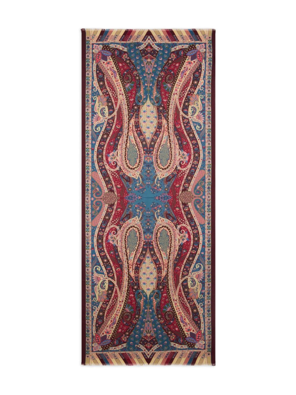 paisley-print scarf Highlights - Blue - Paisley print - Rectangle shape Made in Italy Composition Wool 70%, Silk 30% SIZE & FIT Measurement LENGTH 66.92 in(170 cm) WIDTH 27.55 in(70 cm) Washing instructions Read Manufacturer Guidelines