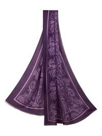 paisley-print scarf Highlights - Amethyst purple - Logo print to the front - Frayed hem - Rectangle shape Made in Italy Composition Modal 90%, Cashmere 10% SIZE & FIT Measurement LENGTH 78.74 in(200 cm) WIDTH 27.55 in(70 cm)