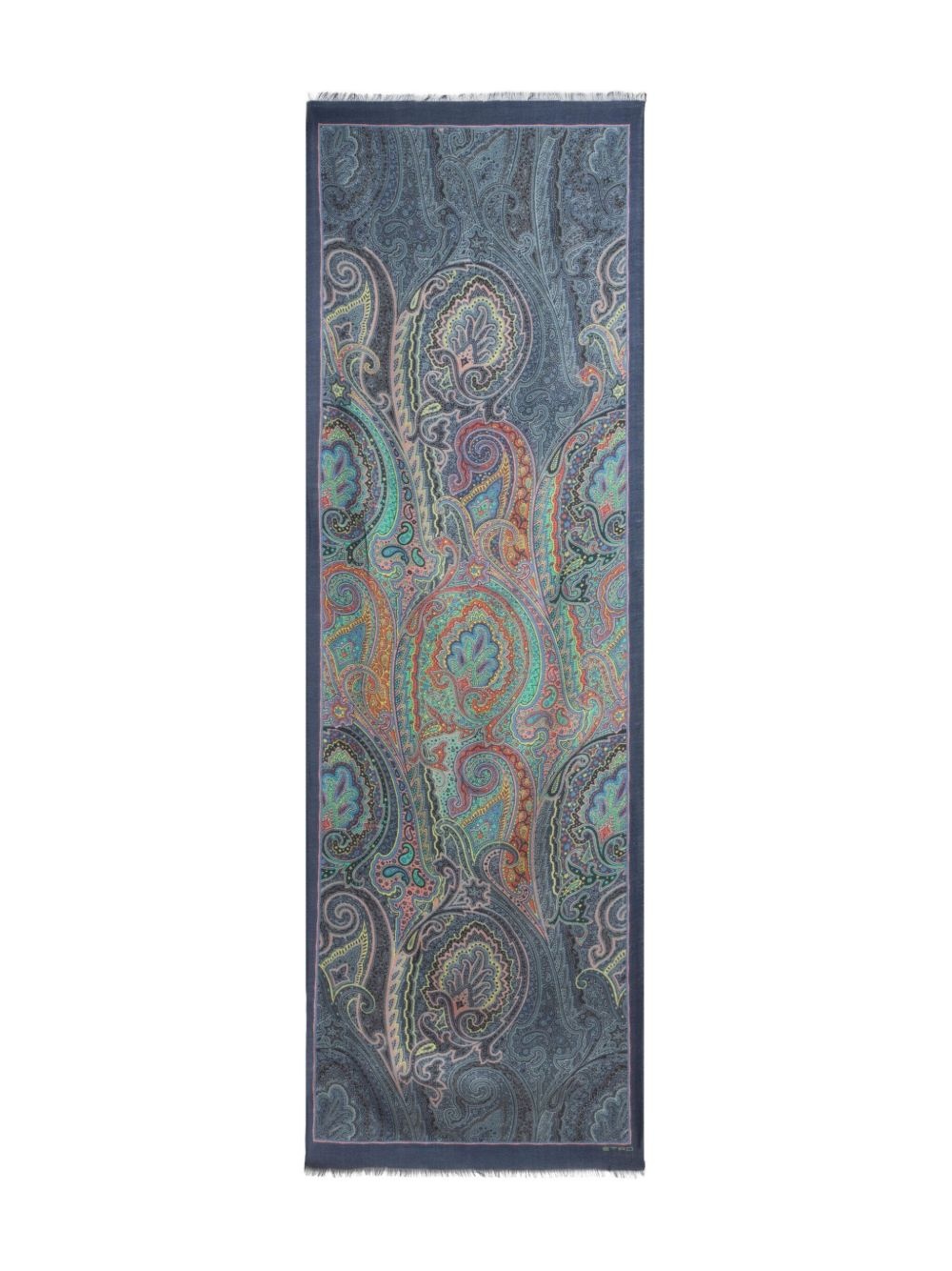 paisley-print scarf Highlights - Navy blue - Logo print to the front - Frayed edge - Rectangle shape Made in Italy Composition Fabric 100% SIZE & FIT Measurement LENGTH 55.11 in(140 cm) WIDTH 17.71 in(45 cm)