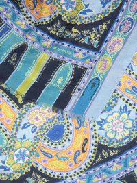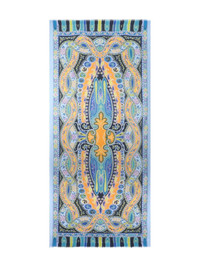 paisley-print scarf Highlights - Sky blue - Logo print to the front - Frayed hem - Rectangle shape Made in Italy Composition Wool 70%, Silk 30% SIZE & FIT Measurement LENGTH 78.74 in(200 cm) WIDTH 26.77 in(68 cm)
