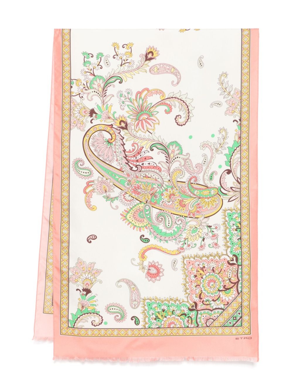 paisley-print scarf Highlights - Light beige - Logo print to the front - Contrasting trim - Frayed edge Made in Italy Composition Silk 100% SIZE & FIT Measurement LENGTH 53.14 in(135 cm) WIDTH 16.92 in(43 cm) Washing instructions Dry Clean Only